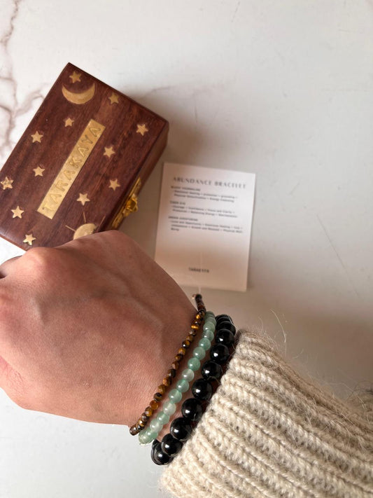 Combo Abundance- Black Tourmaline 8mm + Green aventurine 4mm + Tiger eye Faceted 3mm Natural Crystal Bracelet