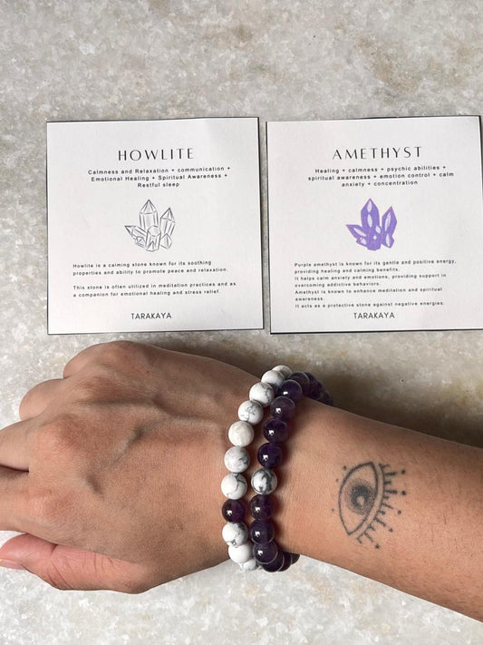 Couple Amethyst / Howlite 8mm Natural Crystal Bracelet