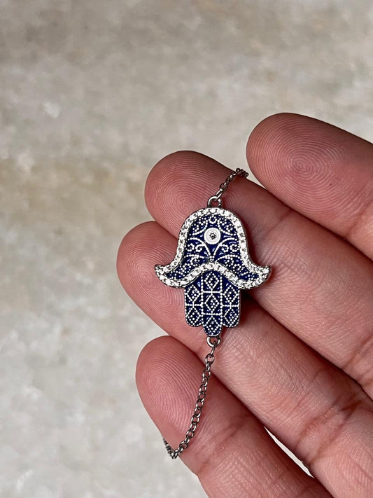 Hamsa Evil Eye Cz 925 Sterling Silver Bracelet