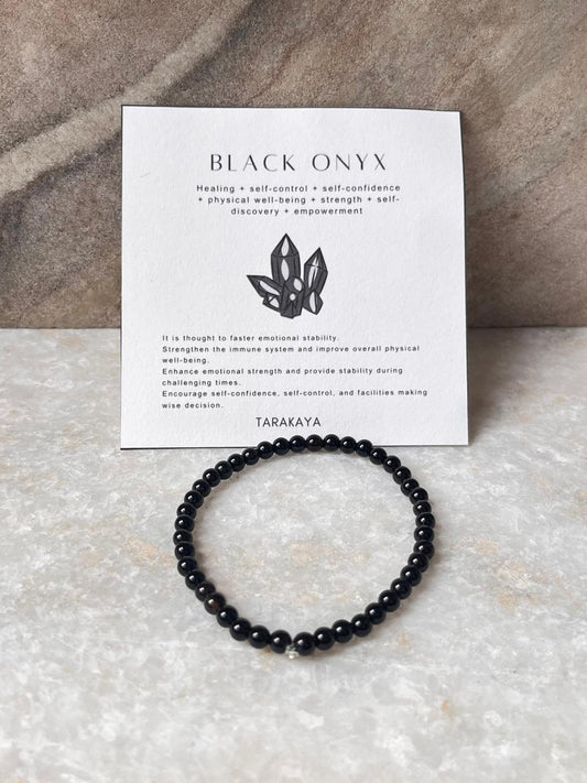 Black Onyx Plain Round 4MM Crystal Bracelet