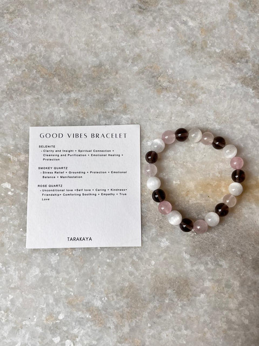 Intention- I Deserve Good Vibes Good Life 8MM Natural Crystal Bracelet