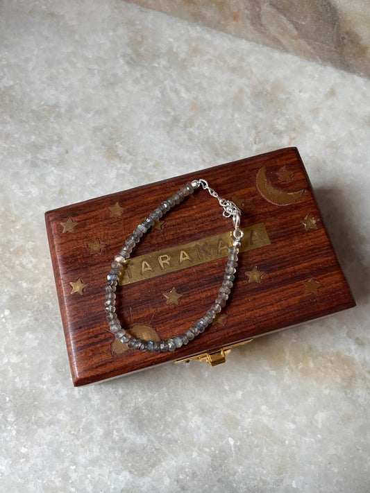 Labradorite 2MM Faceted Crystal 925 Sterling Silver Bracelet