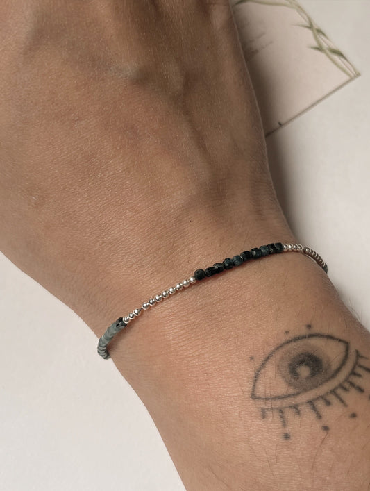 Natural Grandidierite Box Gradient & Silver 2mm Beads Handcrafted 925 Sterling Silver Bracelet