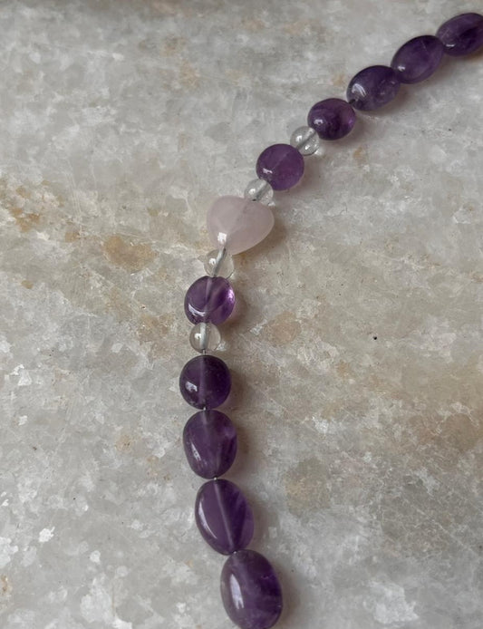 Rose Quartz Heart, Amethyst Tumble & Clear Quartz 925 Sterling Silver Bracelet