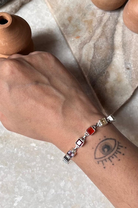 Seven Chakra Square 925 Sterling Silver Bracelet