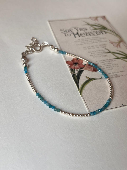 Apatite & Silver 2mm Beads Handcrafted 925 Sterling Silver Bracelet