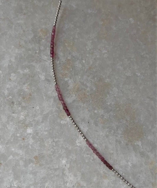 Pink Tourmaline Dark Shade & Silver 2mm Beads Handcrafted 925 Sterling Silver Bracelet