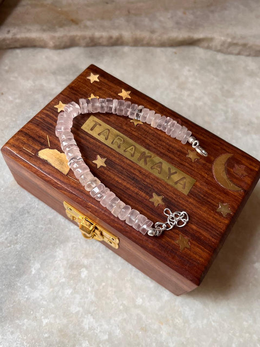 Master Healer 2- Rose quartz heart Handcrafted 925 Sterling Silver Bracelet