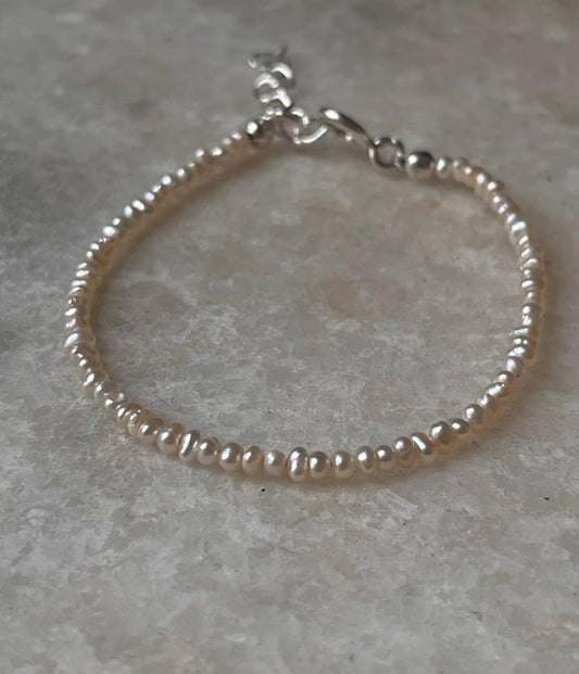 Classic Fresh water Pearls Warm Tone Round Shiny Stackable 2mm 925 Sterling Silver Lock Bracelet
