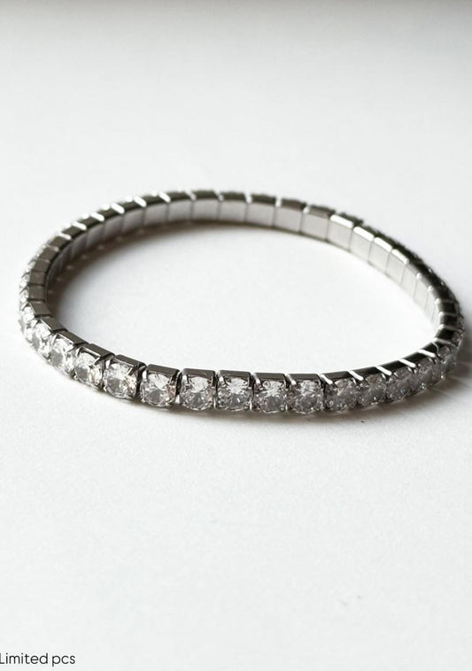 Tennis Elastic Cz 925 Sterling Silver Bracelet