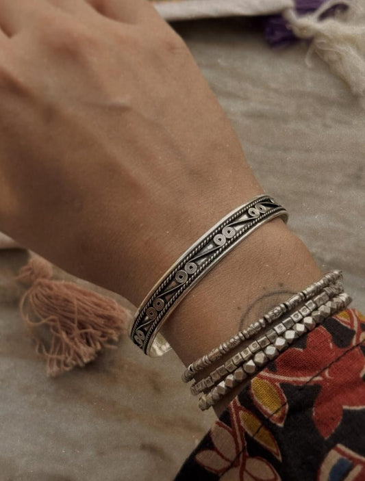 Antique Rawa/ Dot / Ball Solid Daily wear Single 925 Sterling Silver Bangle