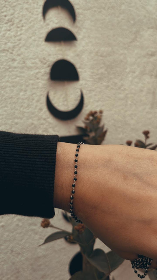 Nazariya-Black Spinel 2mm Handcrafted 925 Sterling Silver Bracelet