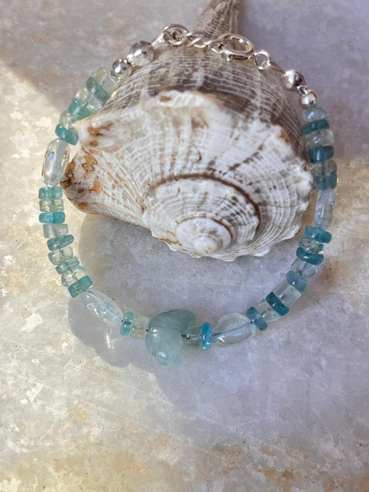 Aquamarine Carved Butterfly Handcrafted 925 Sterling Silver Bracelet