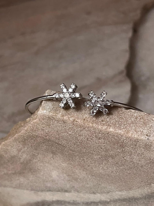 CZ Double Star Adjustable 925 Sterling Silver Flexible Kada