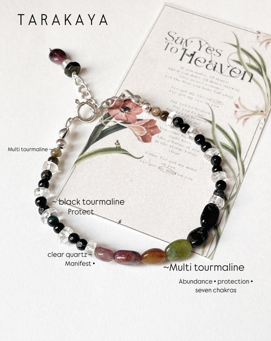 Harmony Shield- Multi Tourmaline & Clear Quartz Handcrafted 925 Sterling Silver Bracelet