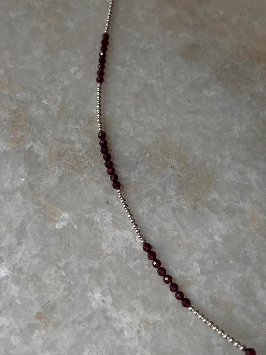 Garnet & Silver 2mm Beads Handcrafted 925 Sterling Silver Bracelet