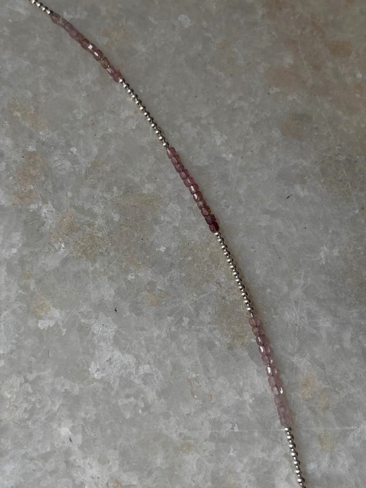 Pink Tourmaline Light Shade & Silver 2mm Beads Handcrafted 925 Sterling Silver Bracelet