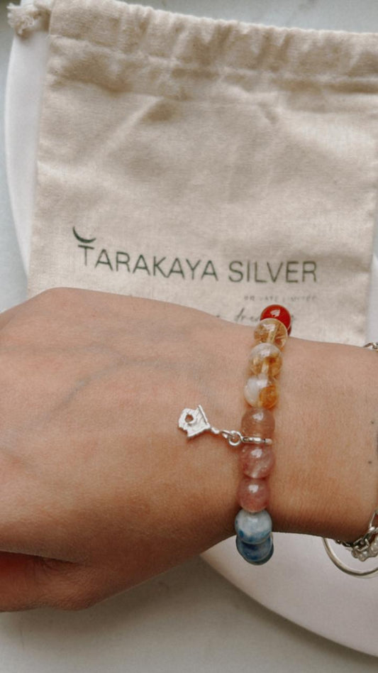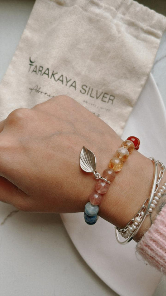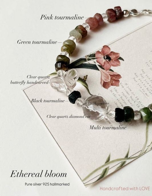 Ethereal Bloom Multi Tourmaline & Clear Quartz Handcrafted Natural Crystals 925 Sterling Silver Bracelet
