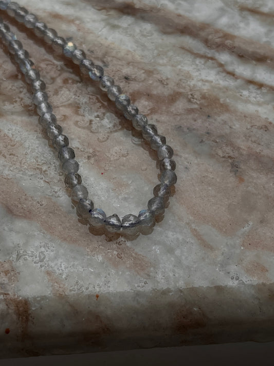 Labradorite 3-4mm Round Faceted Natural Crystal 925 Sterling Silver Bracelet