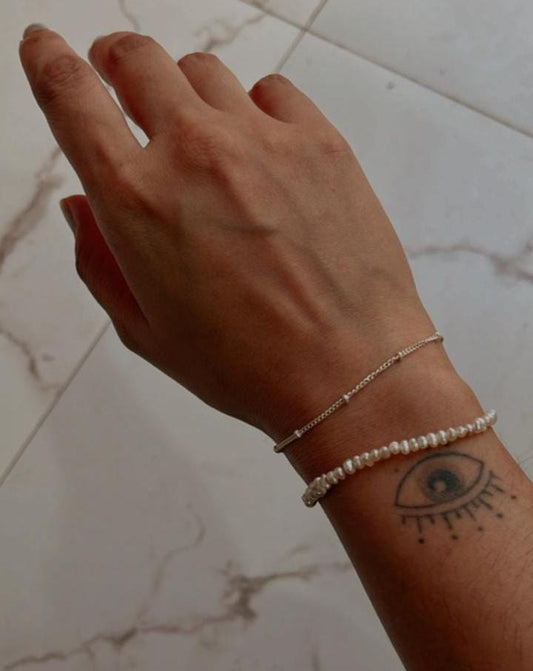 Fresh Water Pearls and Cable Dot 925 Sterling Silver Bracelet Stack