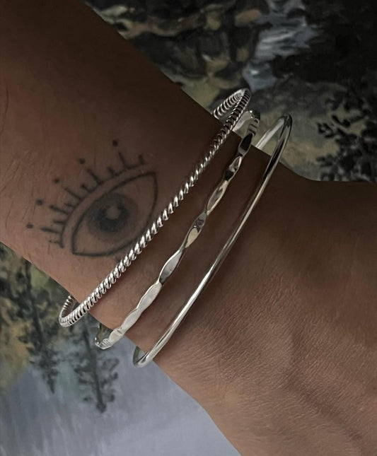 Hammered, Rope & Plain Stack Set 925 Sterling Silver Bangle
