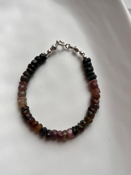 Multi Tourmaline 5-6 mm Natural Crystal 925 Sterling Silver Bracelet