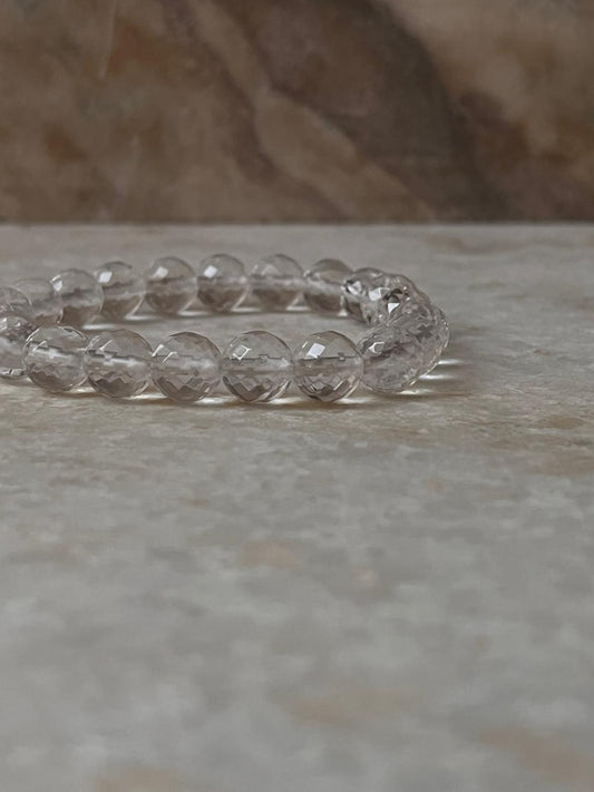 Clear Quartz Diamond Cut Natural Crystal Bracelet 8MM
