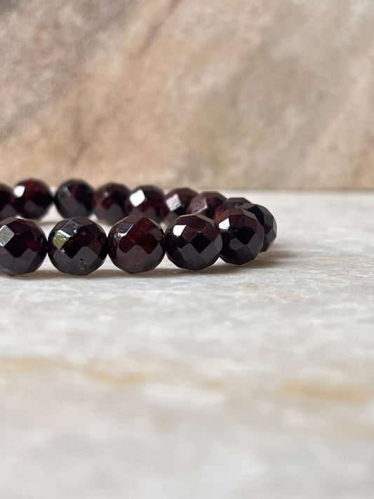 Garnet 8MM Diamond Cut Natural Crystal Bracelet