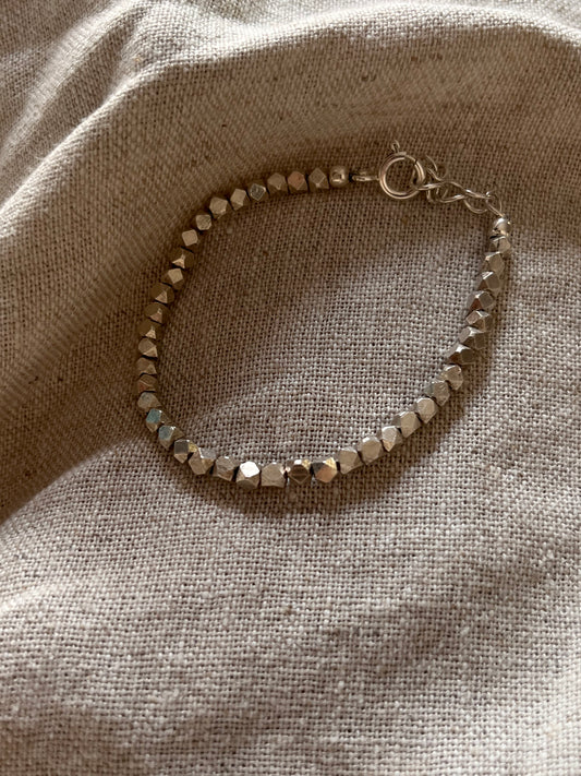 Chunky Raw Antique Solid Silver Cut Beads Handcrafted Stackable Sterling Silver 925 Unisex Bracelet