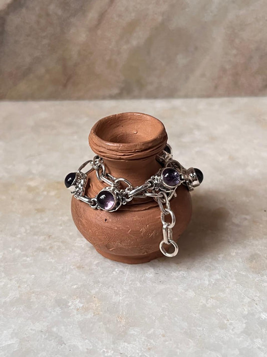 Amethyst Round Flower Boho 925 Sterling Silver Bracelet
