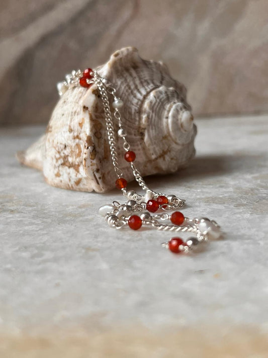 Red Onyx & Pearl Handcrafted 925 Sterling Silver Bracelet