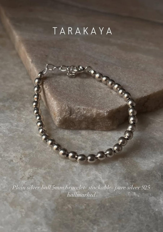 Plain Silver 5mm Balls Handcrafted 925 Sterling Silver Bracelet