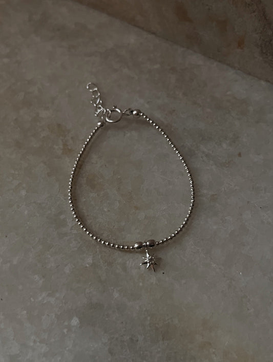 White Topaz North Star with Plain Silver 2mm Beads Handcrafted 925 Sterling Silver Stack Bracelet