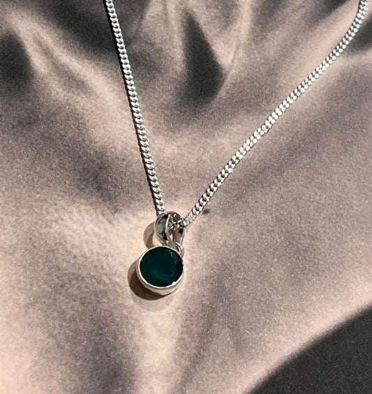 Green Onyx Round Cut 925 Sterling Silver Pendant