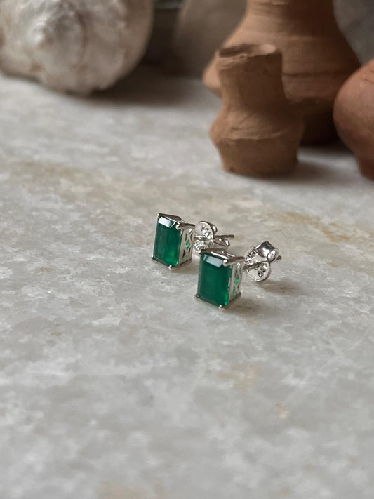 Green Onyx Octagon Cut Studs 925 Sterling Silver Earrings