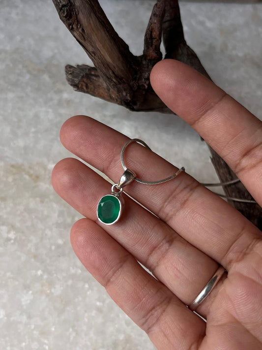Green Onyx Oval Cut 925 Sterling Silver Unisex Pendant