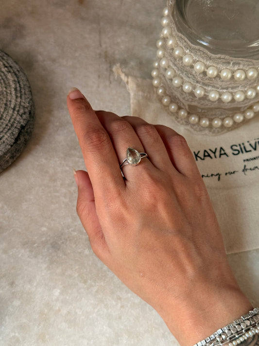 925 Sterling Silver Green Amethyst Rectangular Ring