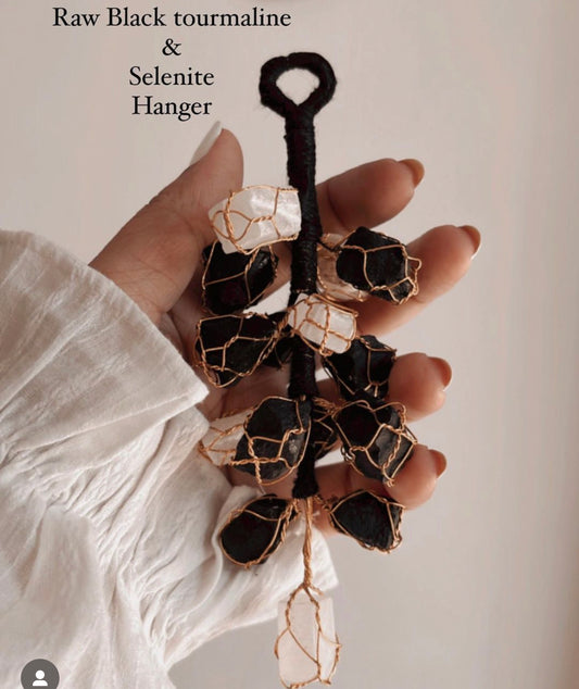 Black Tourmaline & Selenite raw hanger For 🧿 Protection