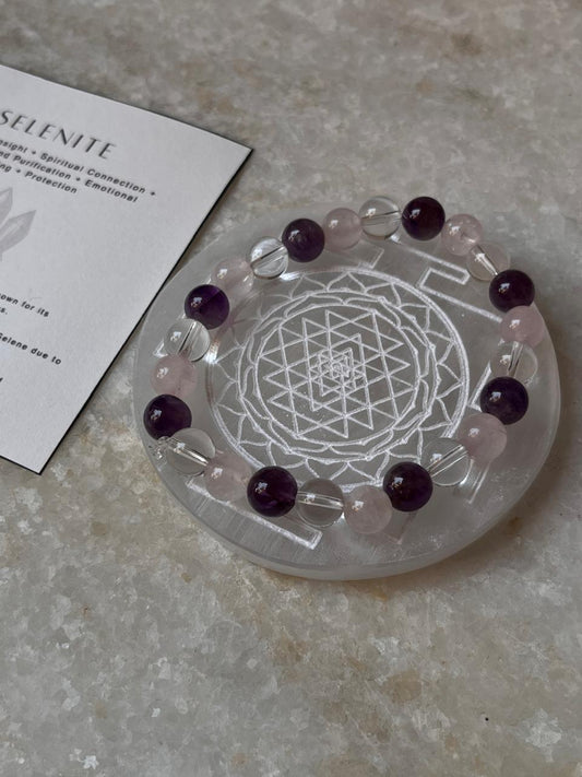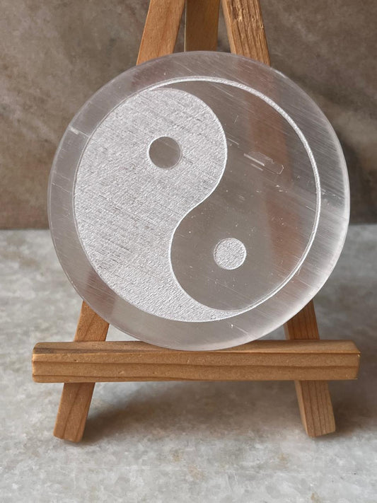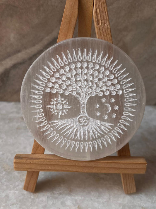 Selenite Charging Plate - Tree of life, Om/Aum , sun & Moon