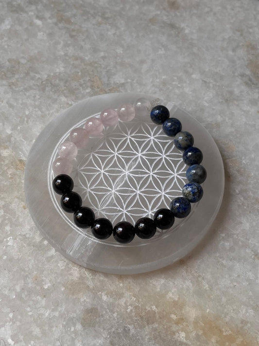 Black Onyx and Black Tourmaline 4MM / Evil Eye 8MM Crystal Nazariya Bracelet