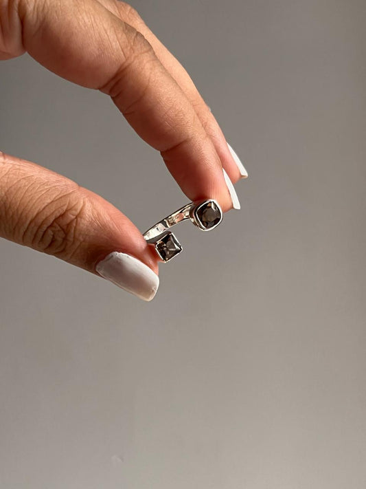 Black Tourmaline Double Raw Uncut Adjustable 925 Sterling Silver Ring