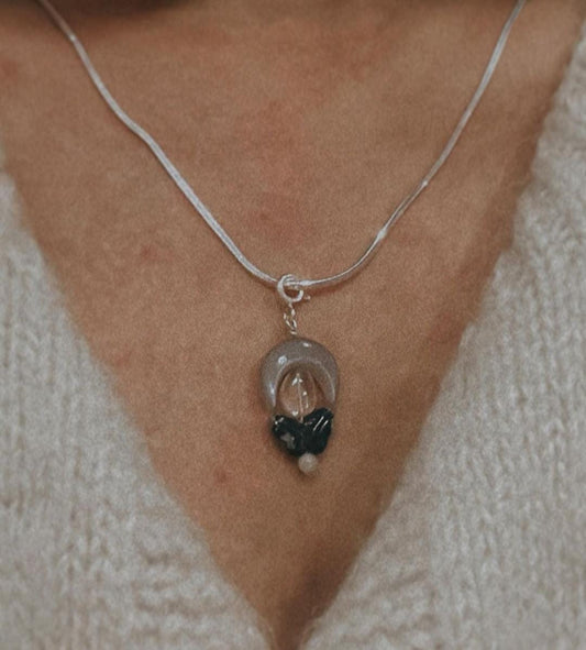 Moonstone Moon Clear Quartz Black Jasper Butterfly Crystal 925 Sterling Silver Charm