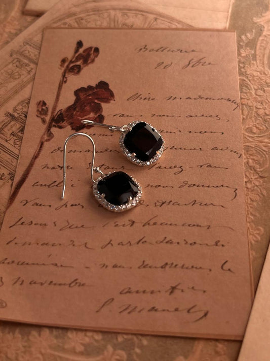 Black Onyx Cushion Cut Halo 925 Sterling Silver Earrings