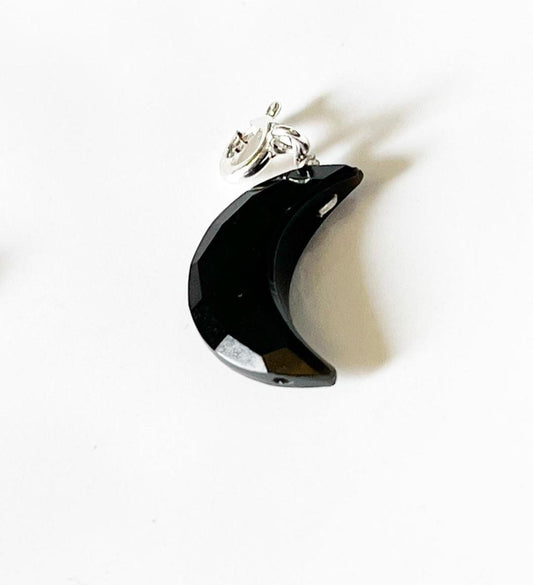 Black Onyx Crescent Moon Crystal 925 Sterling Silver Charm