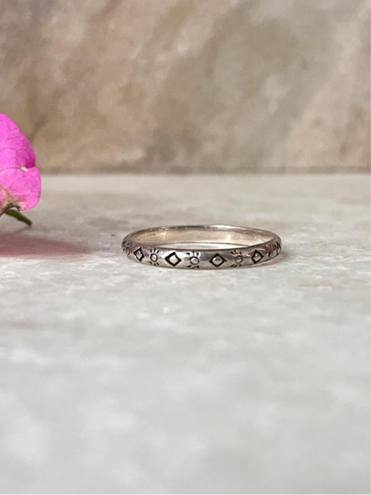 Tribal Engraved Stackable Band 925 Sterling Silver Ring