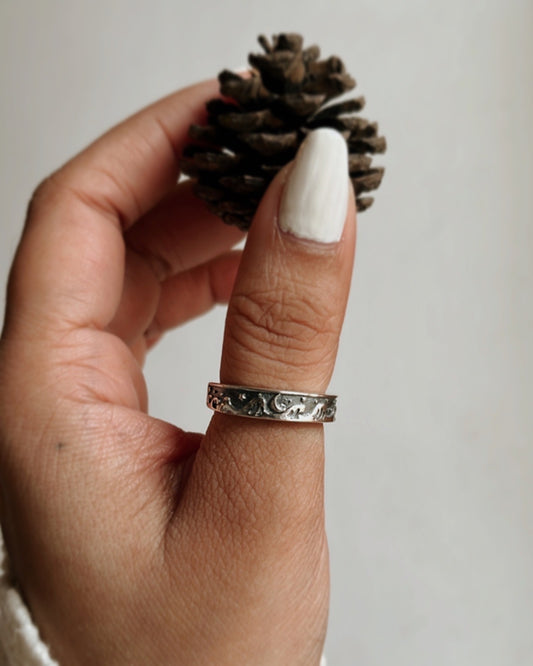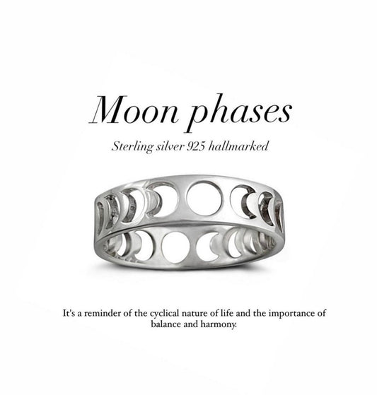 Moon Phases Celestial 925 Sterling Silver Band Ring