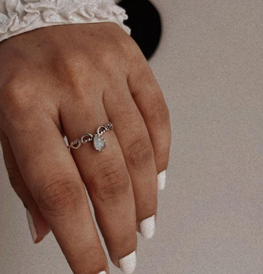 Minimal Dainty Moonstone Moon Phases 925 Sterling Silver Ring