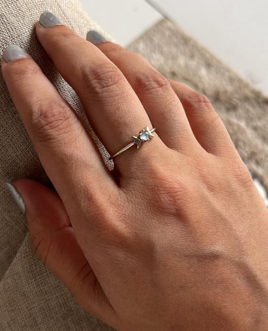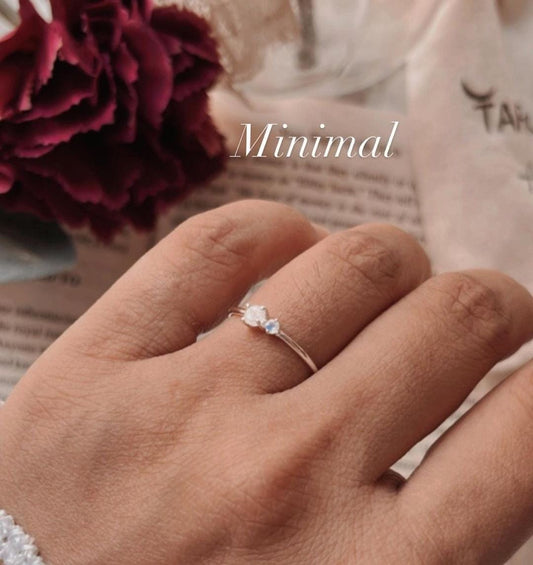 Minimal Dainty Double Stone Moonstone Faceted 925 Sterling Silver Ring