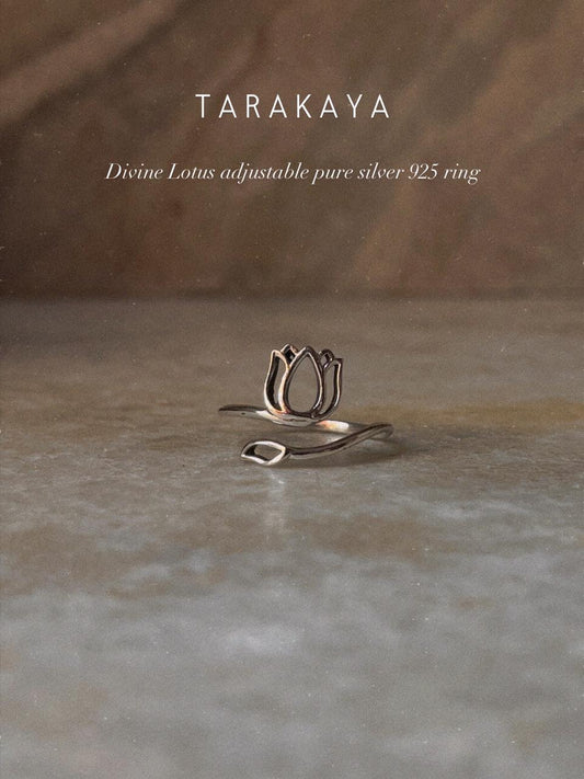 Lotus Cut Out Minimal Adjustable 925 Sterling Silver Ring