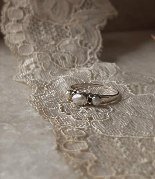 Fresh Water Pearls 3 Band 925 Sterling Silver Ring